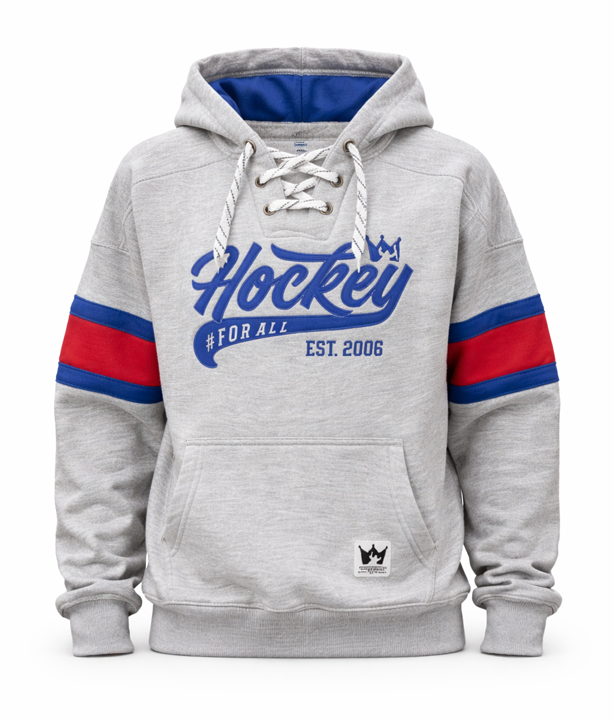 Fantastically comfortable and soft hood-hood sweater in fine quality. Unique design with two different embroidered details/logos on the chest and on the hood. 80% cotton, 20% polyester. Hockey laces at the neck. Label patches in your own design on the inside of the sweater at the neck and on the front. Stripes on the arms and at the bottom. Unisex sizes. The model in the photo is 176 cm tall and wears size S.