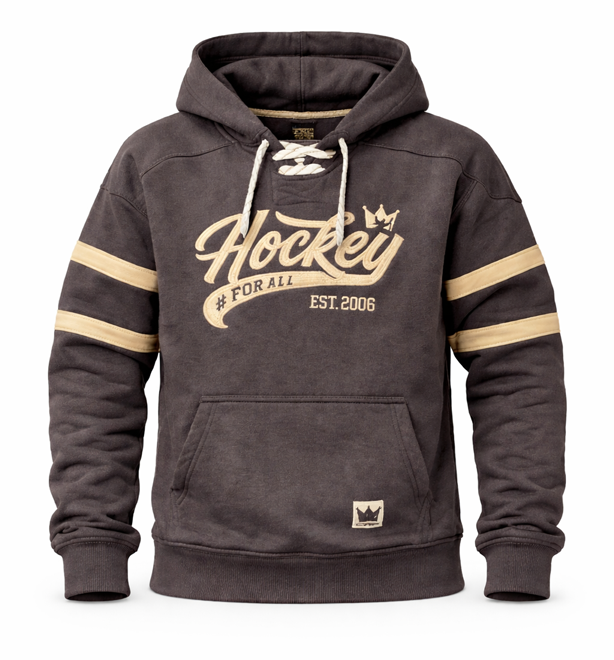 Fantastically comfortable and soft hood-hood sweater in fine quality. Unique design with two different embroidered details/logos on the chest and on the hood. 80% cotton, 20% polyester. Hockey laces at the neck. Label patches in your own design on the inside of the sweater at the neck and on the front. Stripes on the arms and at the bottom. Unisex sizes. The model in the photo is 176 cm tall and wears size S.